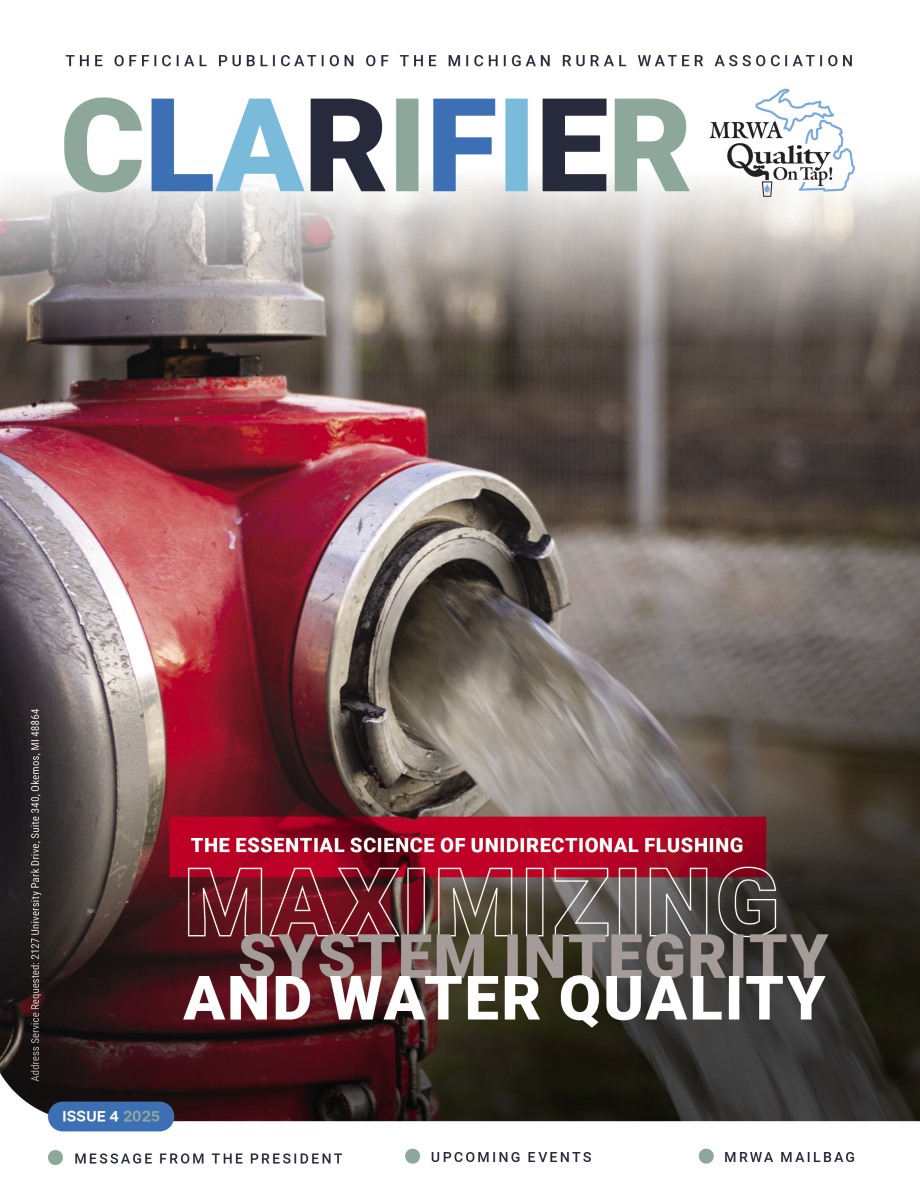 MRWA's publication, The Clarifier quarterly magazine and annual Membership Directory, provide the detailed information that you need to stay informed with colleagues and suppliers to the rural water industry in Michigan. These publications are mailed directly to every water and wastewater operator in Michigan, and handed out to operators during trainings, conferences and on-site visits to communities. The Clarifier and Membership Directory are a benefit to all members of the Michigan Rural Water Association.